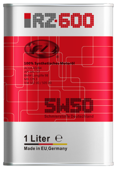 RZ600 5W50 100% Synthetic Motor Oil improves engine performance and power. It provides a lubricating film at the cold start in an extremely quick and stable way and offers high thermal stability under heavy-duty operating conditions. It has excellent wear protection and friction reduction. Its high detergency keeps the engine optimally clean. Due to the very low evaporation loss, the oil consumption is also very low.